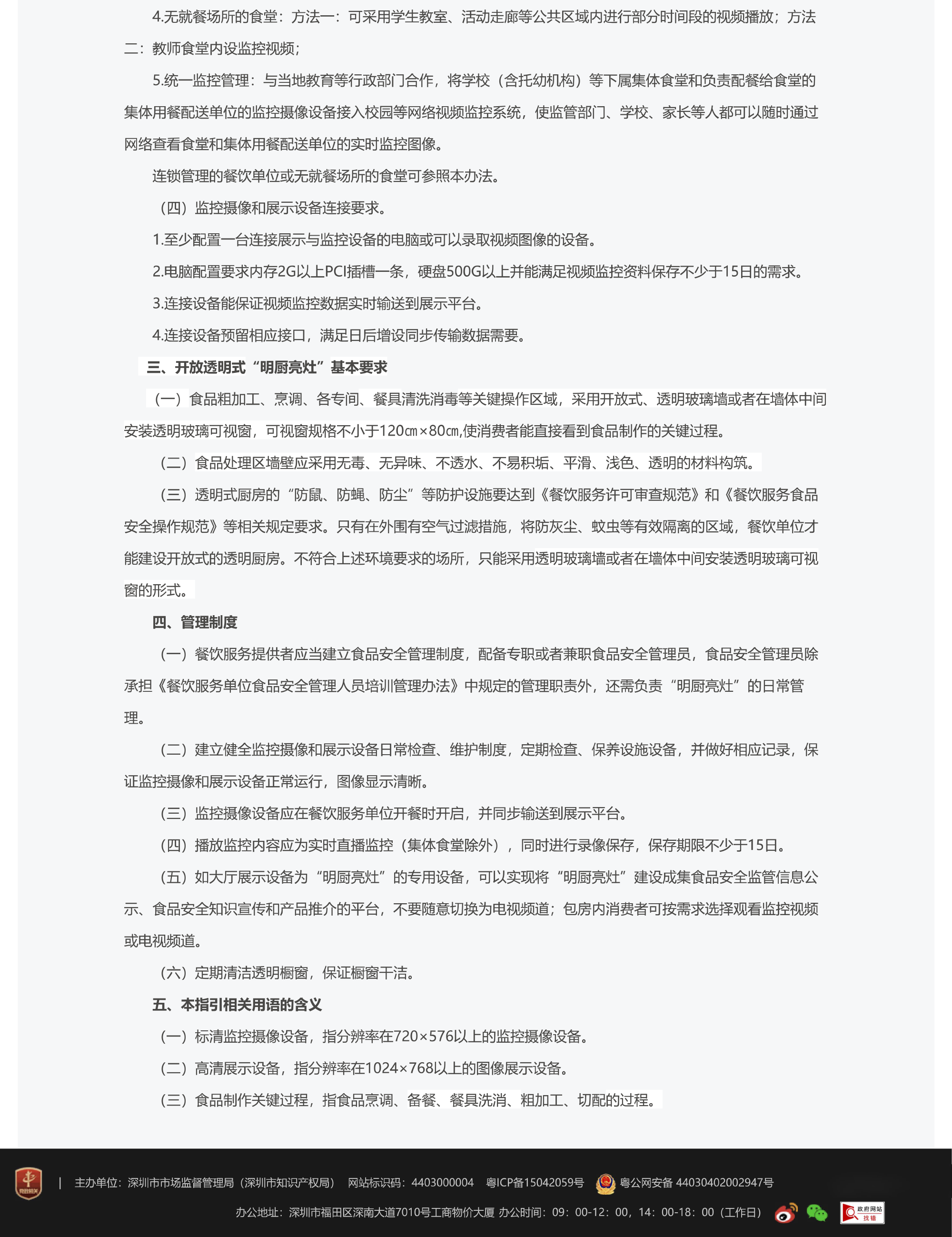深圳市食品药品监督管理局关于餐饮单位“明厨亮灶”建设指引